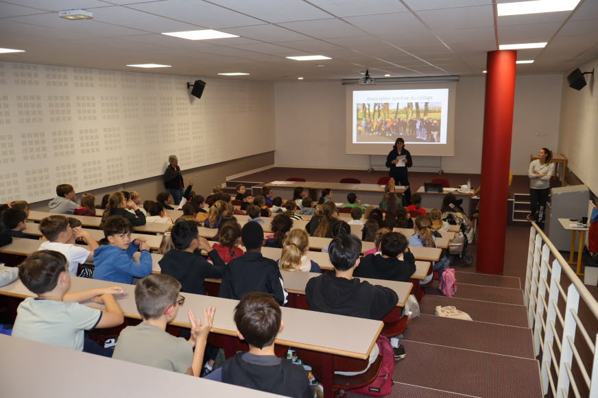 En présence de Mme Portanguen, principale du collège, les professeurs d’EPS ont présenté l’AS aux nouveaux 6è et quelques aînés.