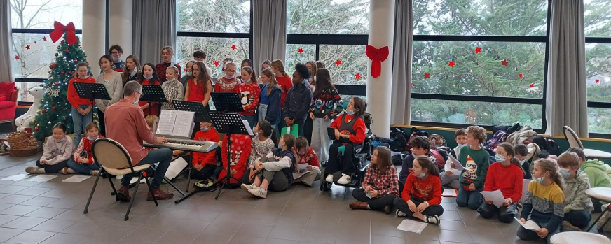 Lundi 15 décembre, 2025, les élèves de l’option chant du collège se sont rendus à la résidence de Bélizal pour un moment de partage musical autour de Noël. Pour l’occasion des élèves de CM de l’école du Véléry avait également été invités à chanter des classiques de Noël que les résidents ont aussi repris en chœur. À l’issue de ces chants, jeunes et anciens ont partagé un goûter pour clore ce moment festif intergénérationnel.